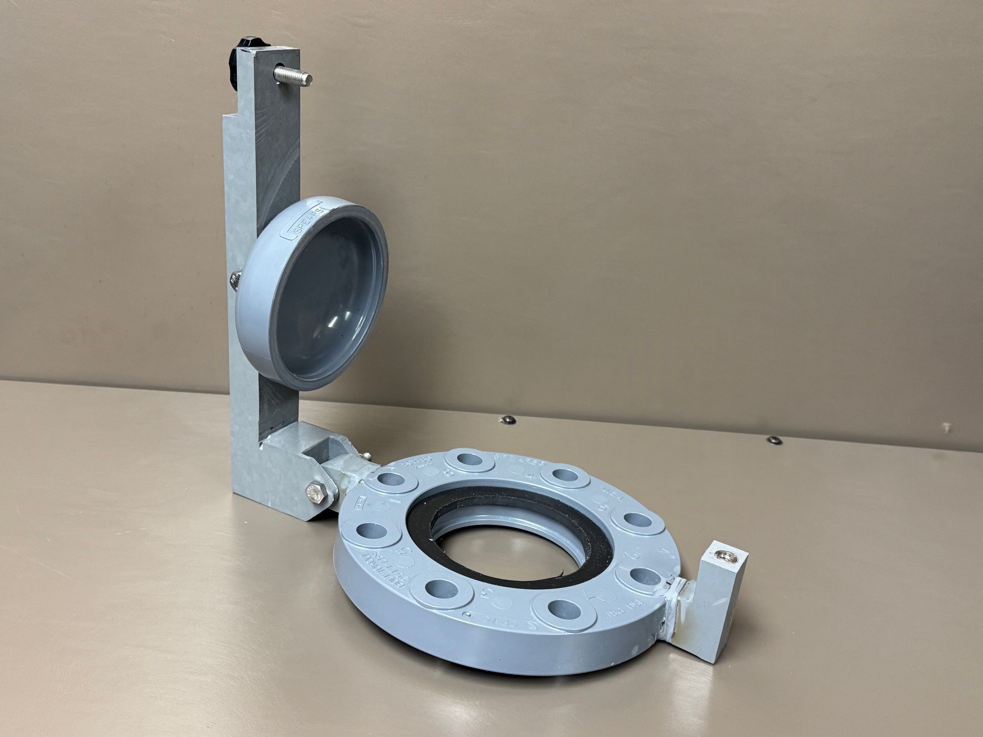 The Tank Gauge Hatch is typically manufactured in metal; however, for this application it has been custom fabricated using CPVC material to suit pharmaceutical requirements.